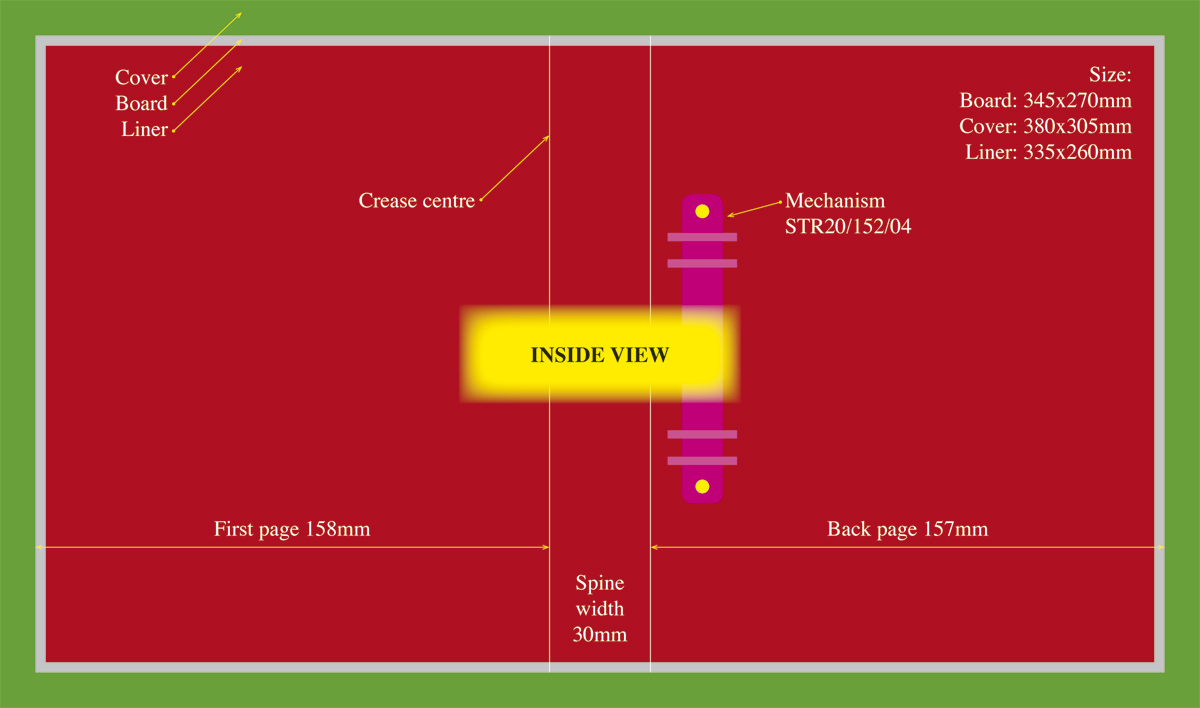 Business card binder layout with STR20 mechanism